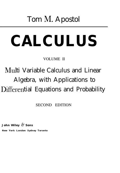 Free PDF APOSTOL CALCULUS VOL 2 SOLUTIONS PDF Kindle Editon Open Library